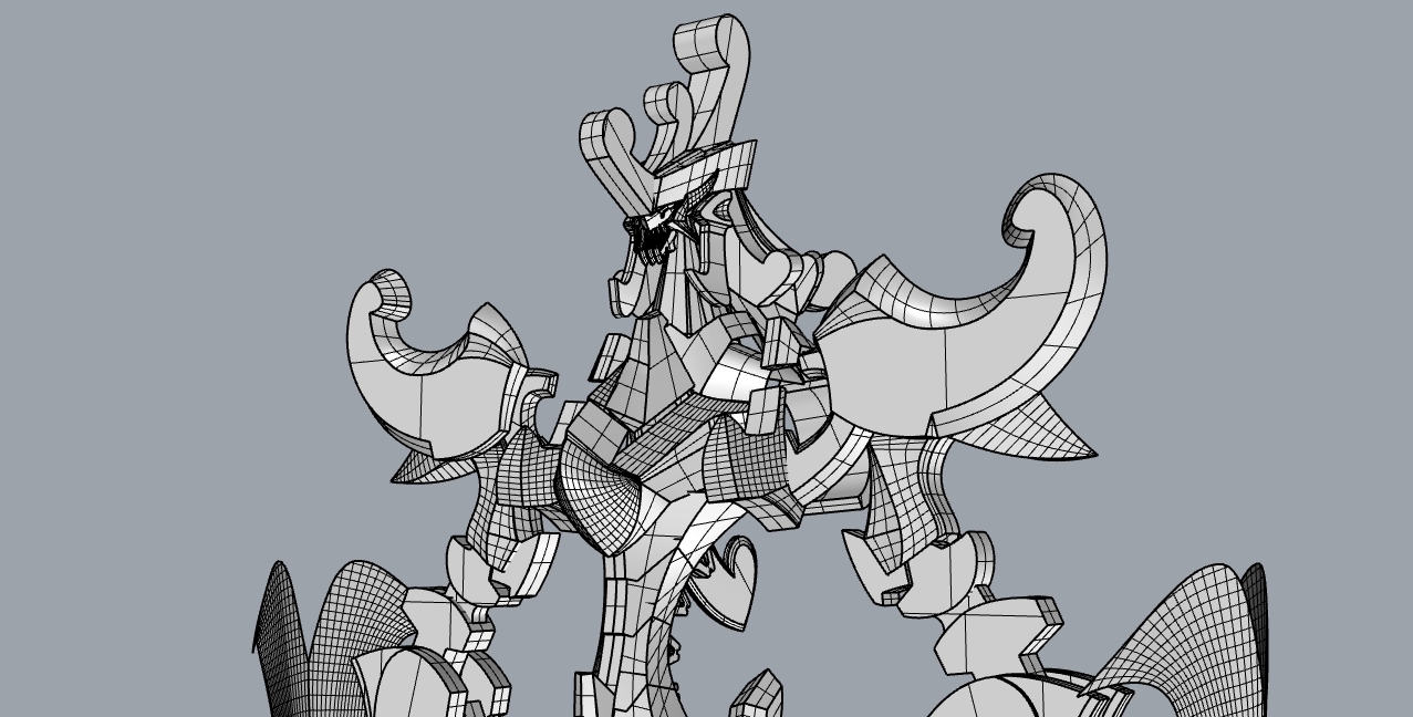 前回の3Dモデルとの変更点は、頭部を沈めて、