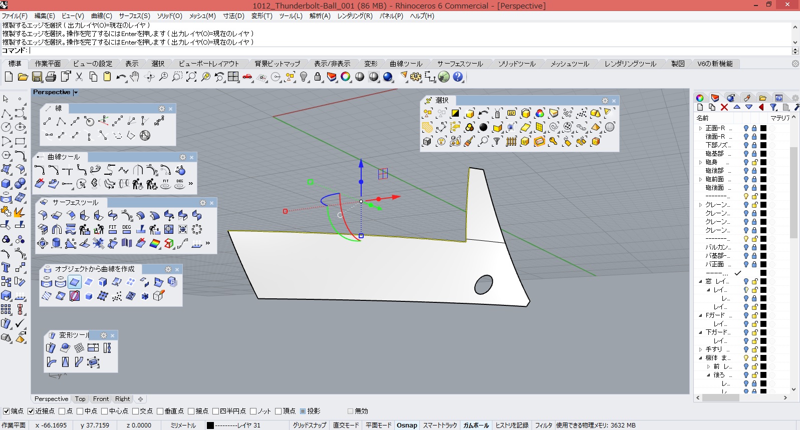 ―で、黄色い部分をサーフェスツール>サーフェスを延長=で延長します。