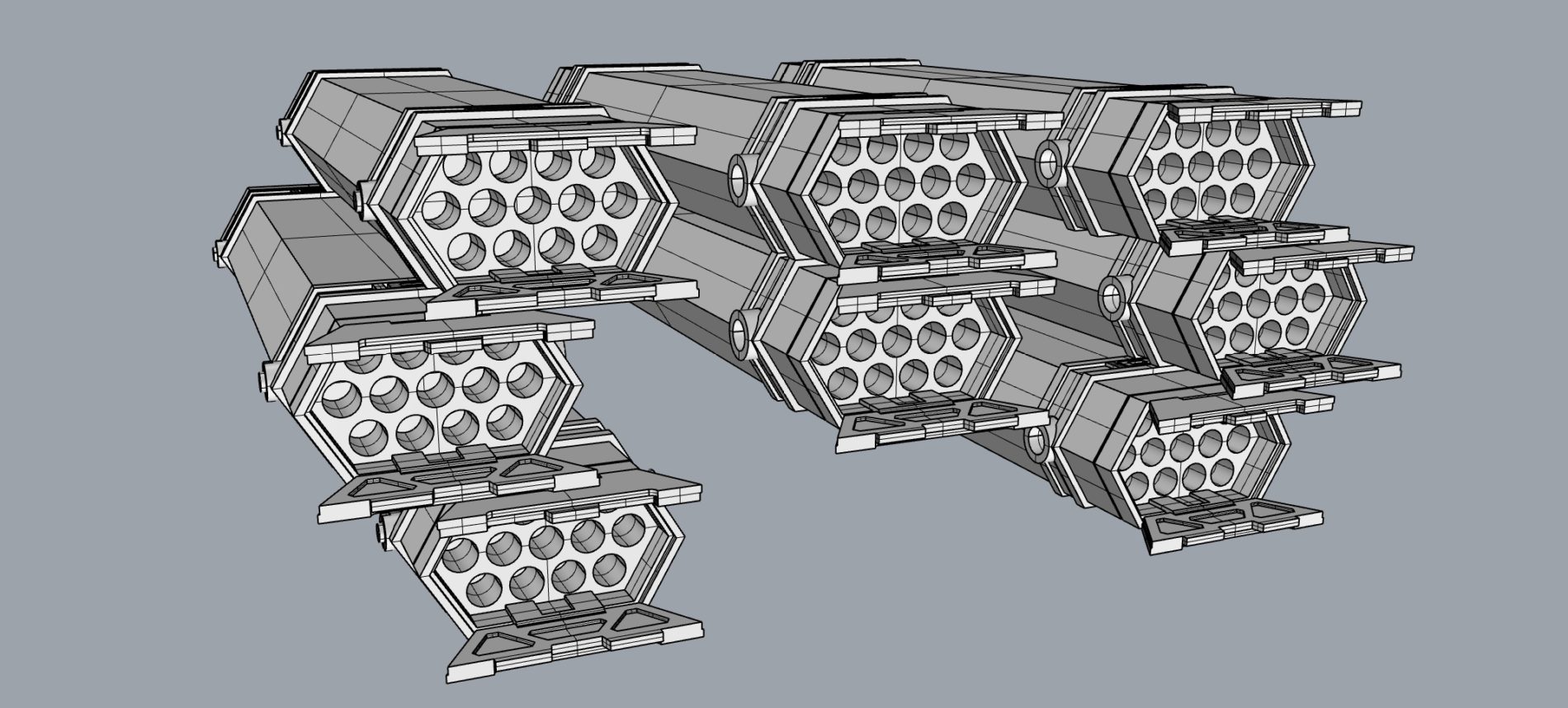 この、上下と中央部のセットを前後でミラーコピーすると、片側のアーム部の完成。