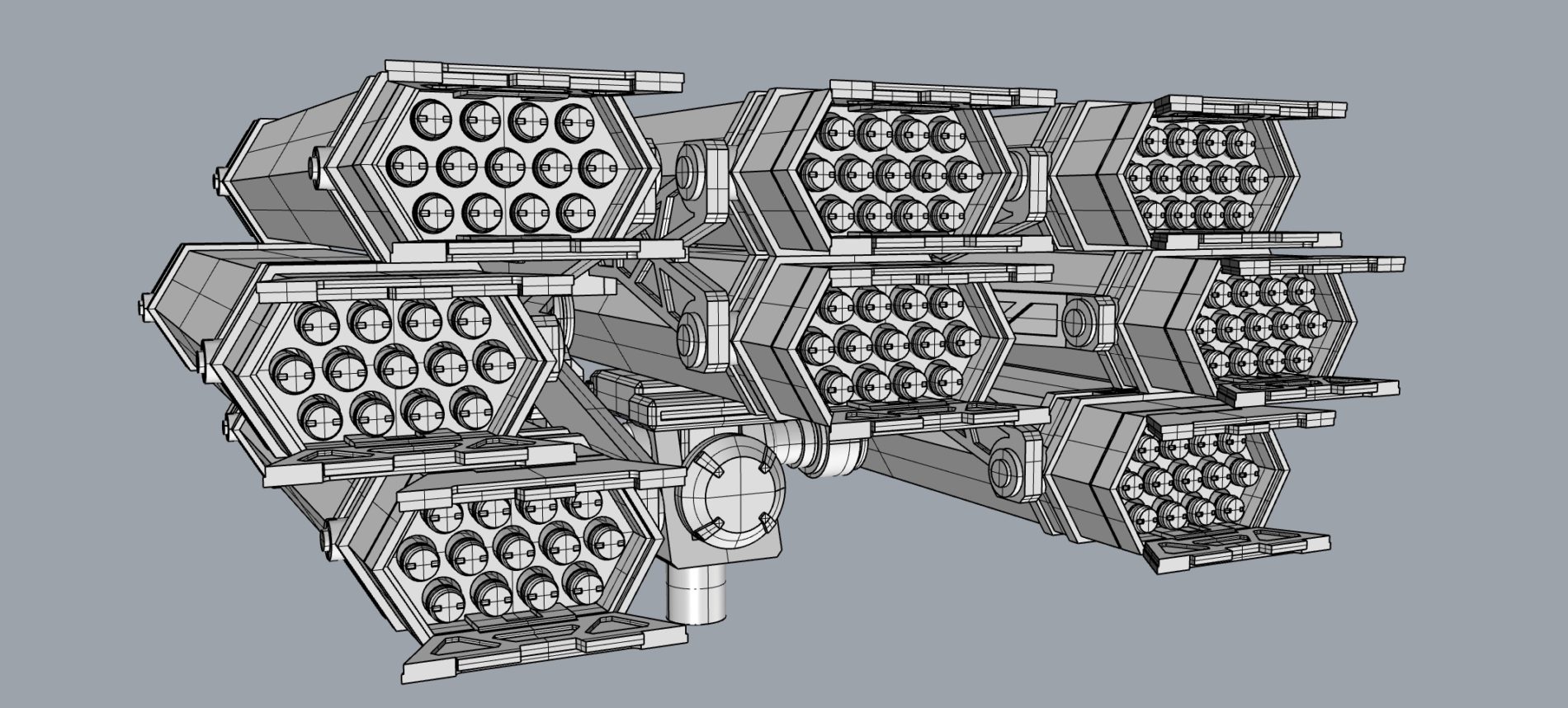 サンダーボルトの他のメカ=宇宙船でも見られる、6角形BOXです。